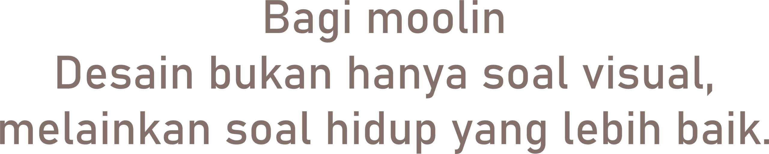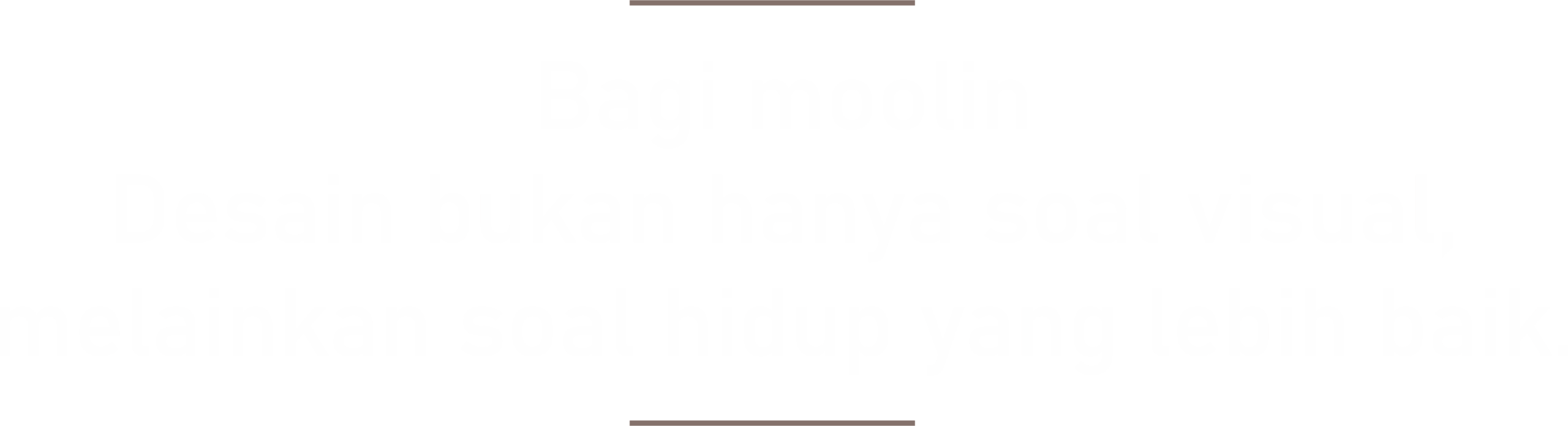 Desain bukan hanya soal visual, melainkan soal hidup yang lebih baik. Moolin adalah studio interior & build berbasis di Malang yang berdiri sejak 2022. Kami percaya bahwa setiap ruang memiliki potensi untuk menghadirkan ketenangan, mencerminkan karakter, dan meningkatkan kualitas hidup penghuni. Melalui ruang yang baik dan perhatian pada setiap detail, kami dapat membuatkan ruang yang tidak hanya indah secara visual, tetapi juga bermakna secara personal.