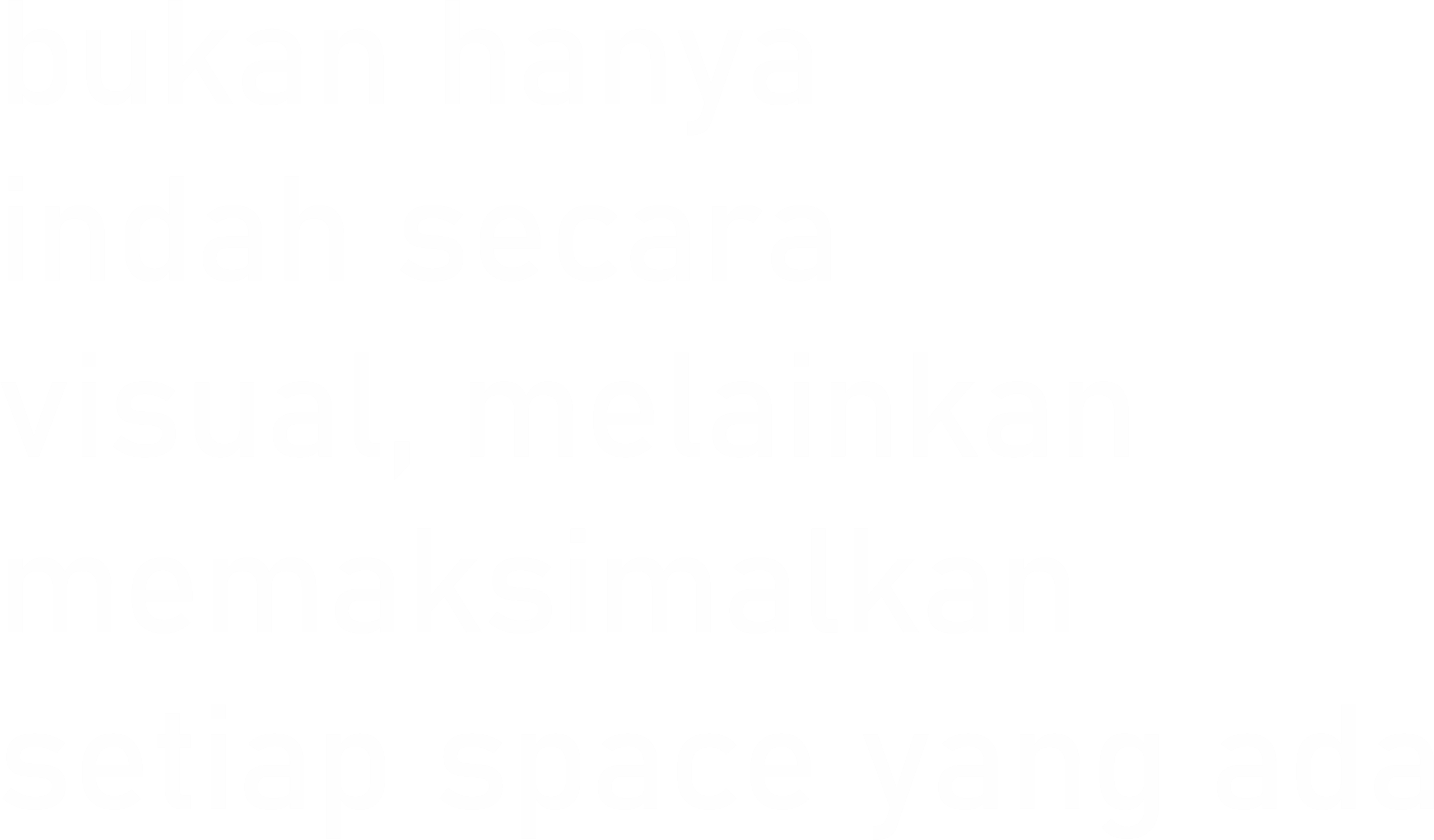 Kami memulai dari yang paling penting: Anda. Setiap proyek diawali dengan mendalami siapa Anda, gaya hidup, preferensi, kebiasaan, dan tujuan ruang yang Anda impikan. Kami menciptakan desain yang bukan hanya nyaman dan aman, tetapi juga menggugah rasa, membangkitkan semangat, dan membawa keseimbangan emosional dalam keseharian Anda. Kami memahami bahwa ruang adalah ruang paling personal. Karena itu, setiap desain kami hadir untuk mencerminkan siapa Anda, bukan hanya sebagai penghuni, tetapi sebagai pribadi yang unik. Mewujudkan ruang yang tidak hanya memenuhi fungsi, tetapi juga memberikan pengalaman hidup yang lebih baik, pencapaian yang abadi